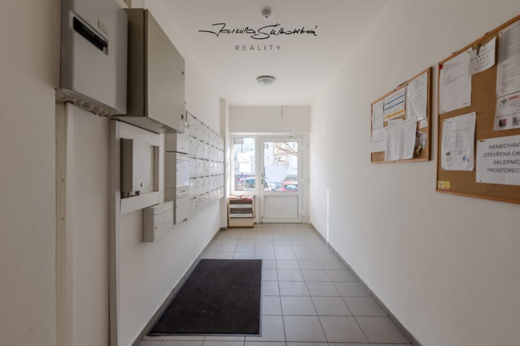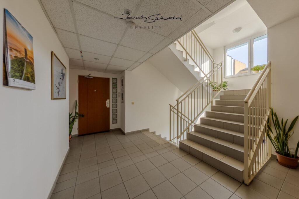 Před vstupem do bytu se nachází společná chodba pouze pro dva byty, což zvyšuje pocit soukromí a klidu.