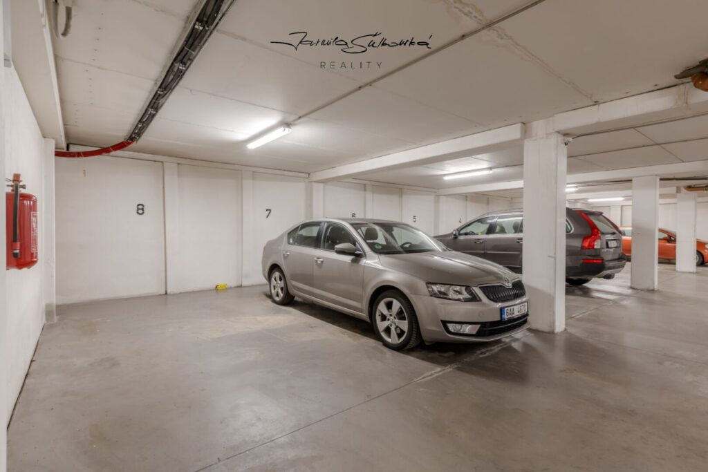 K bytu je možné dokoupit parkovací stání přímo v suterénu domu, které se nachází přímo vedle sklepa.