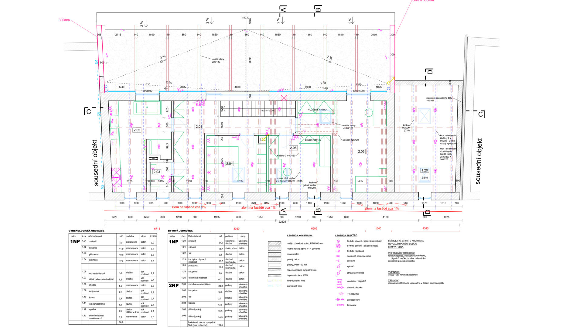 Pozemek disponuje platným stavebním povolením na stylovou rodinnou rezidenci a ordinací.